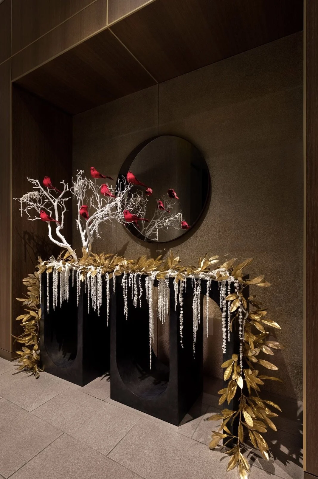 When designing for the holiday in a corporate space it's good to be considerate of those who want to enjoy the space, but don't celebrate Christmas. To achieve a holiday look without being centered on religion, I thought about how this time of year makes me feel.
