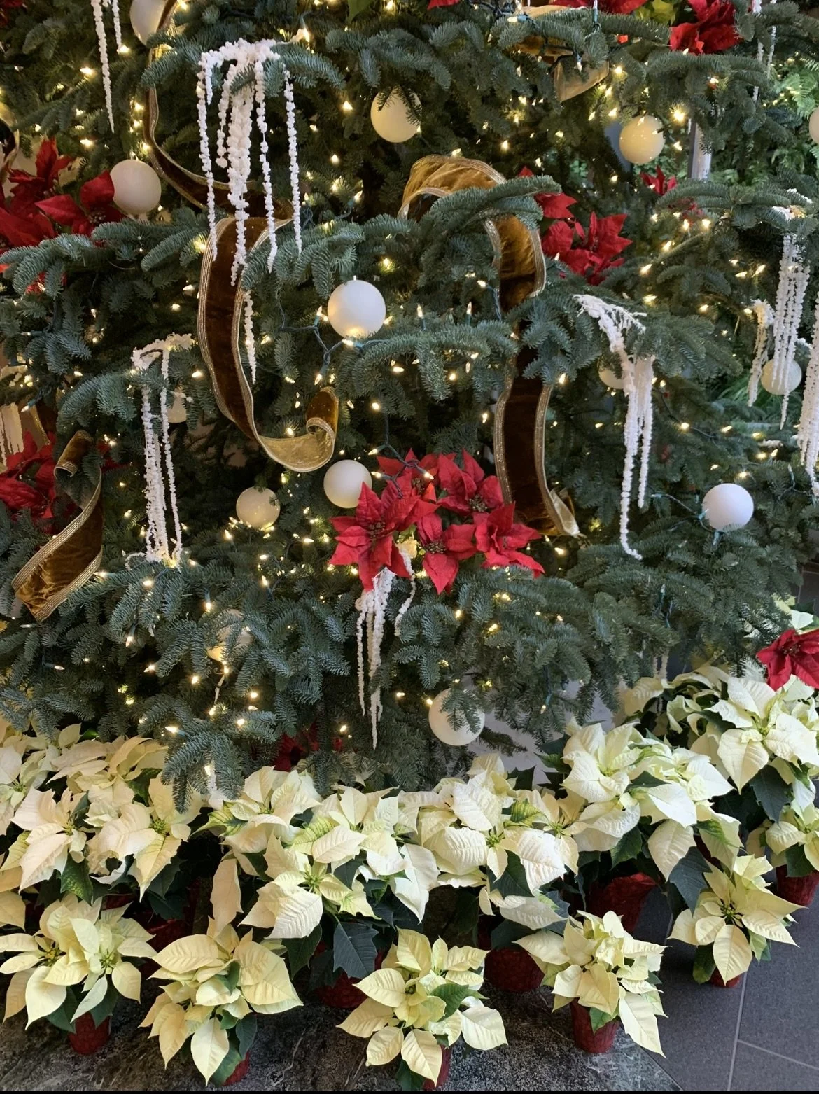 For the tree I worked with Guardsmen which provided excellent service and were able to deliver and have the live 18’ tree secured and standing the day before my studio arrived to decorate. Pottery Barn had the nicest tree skirt.